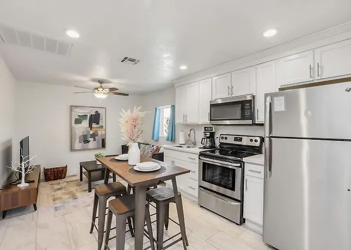 2Br Desert Retreat Central Phoenix Monthly Rental villa heeft een complete keuken met een oven om aan alle behoeften van de gasten te voldoen. Ollie Vaughn's biedt Amerikaanse gerechten aan en ligt op 200 meter van de accommodatie. De luchthaven Phoenix Sky Harbor ligt op 5 km afstand, terwijl het McDowell Rd & 19th St busstation in de buurt van 2Br Desert Retreat Central Phoenix Monthly Rental villa is.